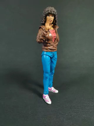 Las proporciones me parecen acertadas. El look ochentero de este personaje es justo lo que transmite la figura con esa chupa de cuero marrón, las zapatillas rosa o esa melena curly. Cuando tienes un buen diseño, lo único que tienes que hacer es no cagarla, y NECA ha cumplido con las expectativas, ofreciéndonos una figura impresionante.