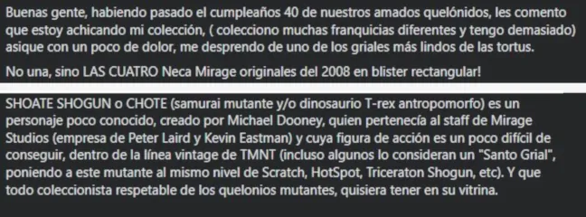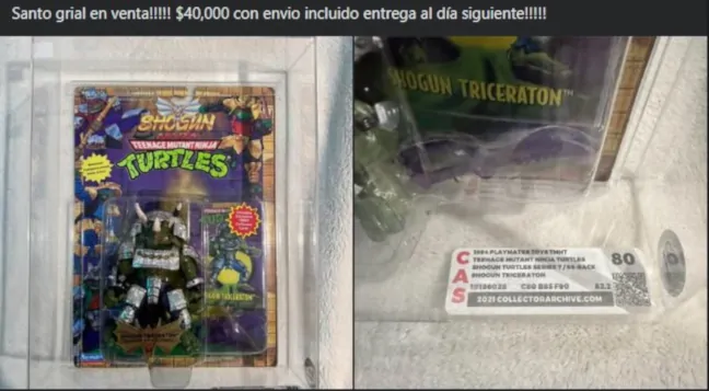 Imagen de una venta de Shogun Triceraton, refiriéndose como un santo grial